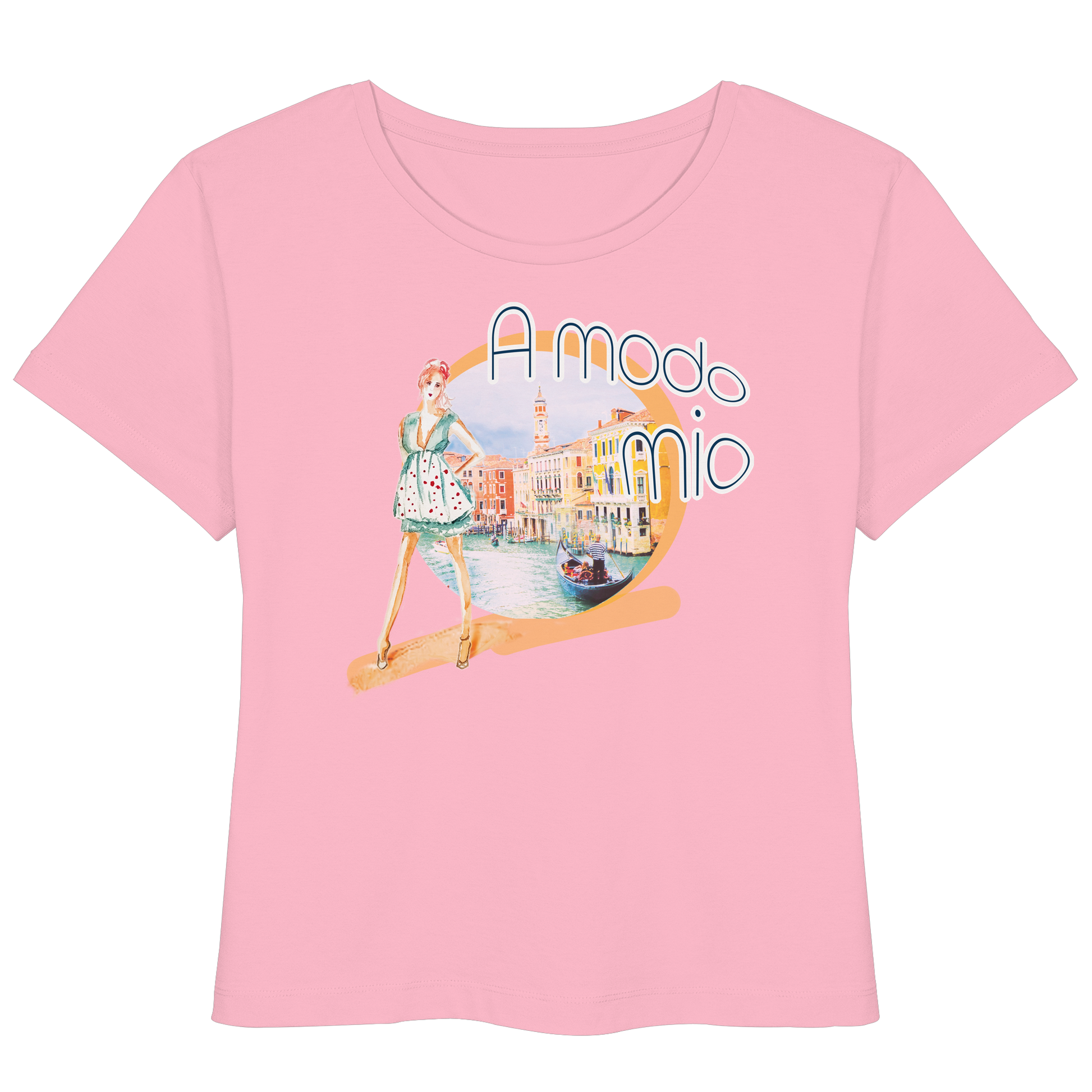 Erlebe die Verschmelzung von Kunst und Mode mit unserem limitierten "A modo mio" T-Shirt. Inspiriert von der lebhaften Szenerie Venedigs, bringt das Design eine harmonische Verbindung aus Pastelltönen und lebendigen Farben in Deinen Kleiderschrank.