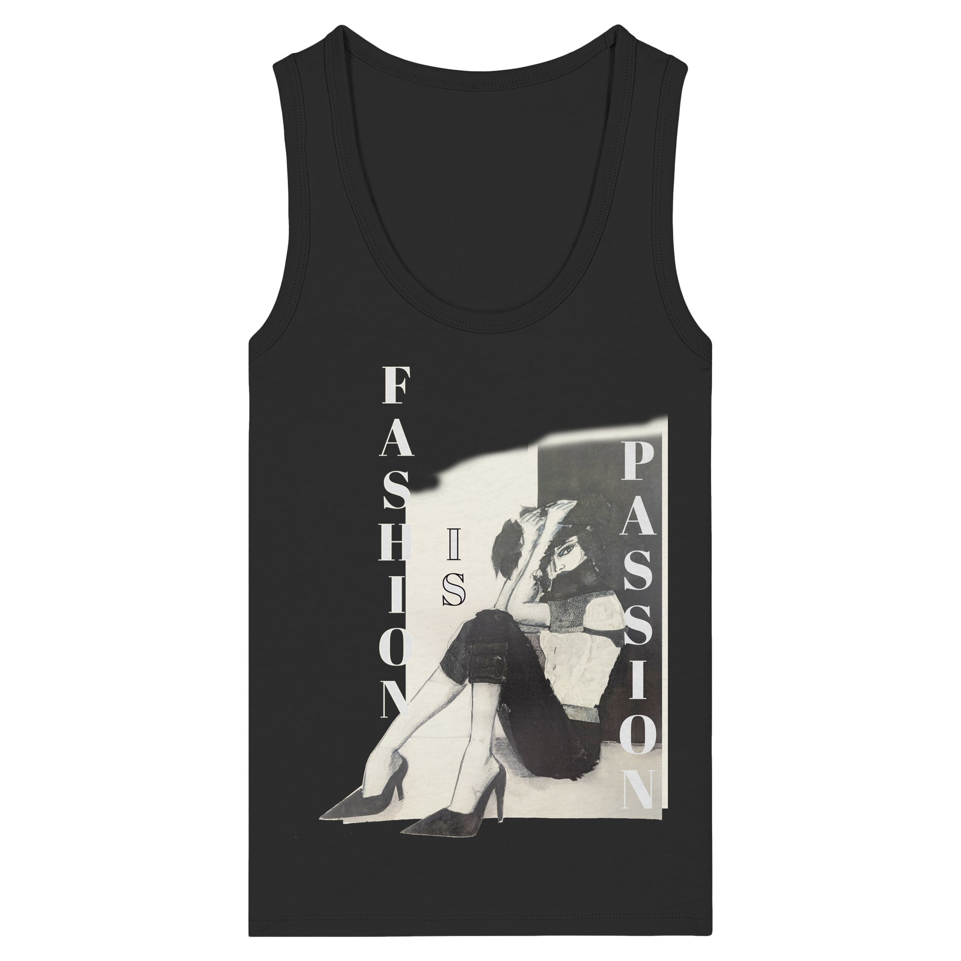 Dieses Damen Bio Women- Top vereint kunstvolle Illustration mit zeitlosem Stil. Die schwarz-weiße Zeichnung, ergänzt durch den markanten Slogan 'Fashion is Passion' und vermittelt eine starke Botschaft für Mode-Enthusiasten.