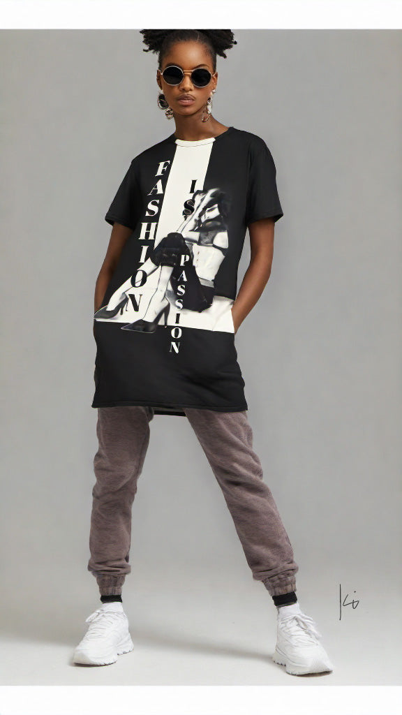 Fashion is Passion - Black and White - Allover printed - T-Shirt-Kleid